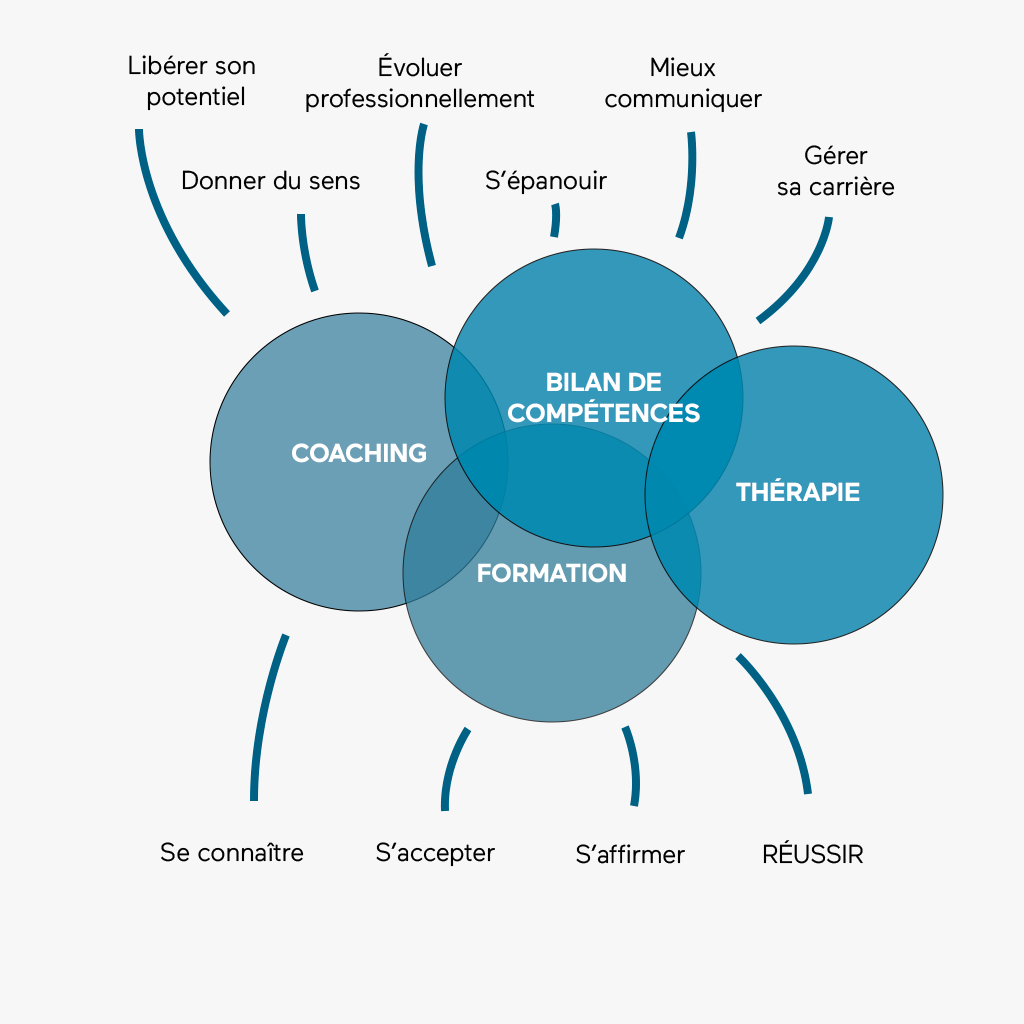 Grâce à la psychothérapie, au coaching, au bilan de compétences, et à la formation, je vous accompagne pour construire une vie et une carrière qui vous ressemblent